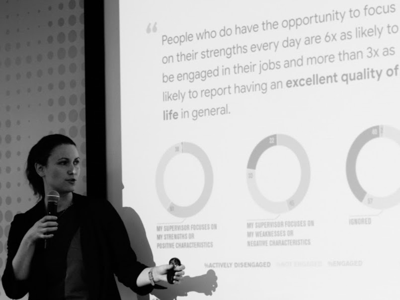 Celem warsztatu jest wzmocnienie efektywności pracy zespołu poprzez poznanie mocnych stron wszystkich osób. Warsztat prowadzony jest w oparciu o wyniki kwestionariusza CliftonStrengths Top 5 zbudowanego przez Instytut Gallup specjalizujący się w badaniach nad środowiskiem pracy.